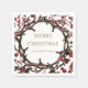 Las servilletas de fiesta navideña con un ilustracion de corona ramificada con bayas rojas de invierno y un guión elegante en el medio creando un diseño divertido.