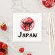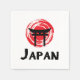 Ilustracion japonés de diseño de texto con sol rojo grueso y decoración de la puerta Torii para todos los que les gusta viajar
