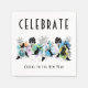 ¡Las servilletas de cócteles coloridas y divertidas para ayudar a sonar en el nuevo año! Los gatos de jazz en silueta tocan el tambor, el címbalo, la trompeta, el piano y el doble bajo, frente a fuegos artificiales, globos y altavoces. La palabra CELEBRATE está en la parte superior en negrita. En la parte inferior se puede leer "AZOTES AL NUEVO AÑO"... seguro que alegrará cualquier decoración fiesta.