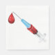 Una jeringa de sangre con una gota roja de sangre al final. Este diseño parece realmente efectivo en estas servilletas de papel