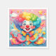 Un payaso personalizado vibrante con una sonrisa contagiosa, rodeado por un mundo de formas coloridas, estrellas y nubes. El pelo rizado y el vestido del payaso son caleidoscópicos de colores pastel, a juego con el ambiente lúdico. La imagen excluye la felicidad y la alegría despreocupada, perfecta para traer una sonrisa a la cara de cualquiera.