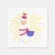 Llama fina con una pom-pom roja y una manta con estrellas azules y blancas en un sombrero alto para la celebración del 4 de julio.