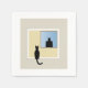 En svart katt sitter vid ett fönster och ser en silhuett av en superhjältefigur i det motsatta fönstret.