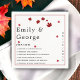 Estas elegantes servilletas de casamiento son perfectas para un boda de otoño moderno. El diseño es sencillo, con hojas en caída burdeos y una tipografía elegante en negro y borgoña sobre un fondo blanco.