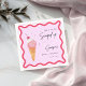 Celebra con estas toallas de ducha de novia, con un cono de helado de color de agua de inspiración retro con una cereza encima. El diseño incluye un texto de guión elegante y dos marcos ondulados juguetones en rosa y rojo, perfectos para añadir un toque divertido y vintage a la decoración de la ducha de novia. Estas servilletas son ideales para las novias que aman una mezcla de vibraciones extravagantes y retro, haciendo su evento extra dulce y memorable.