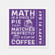 Estas toallas únicas para profesores de matemáticas, estudiantes y científicos del Día Pi presentan un diseño de símbolo Pi dentro de un pedazo de pastel y saludos del Día Happy Pi. Dice "Las matemáticas son un trozo de tarta que concuerda perfectamente con una taza de café" y está decorado con ilustraciones. Puede cambiar el color de fondo antes de realizar el pedido.