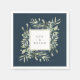 Con delicadas hojas de eucalipto sobre un fondo azul marino. Estas servilletas de papel botánico de moda pueden ser personalizadas con sus nombres. Diseñado por Thisisnotme©