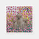 En el fondo de la floración se pueden ver tres cachorros de Labrador con un diseño de pintura al óleo