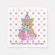 ¡Estas son servilletas de papel lindas para la fiesta de cumpleaños de una niña! Tienen un adorable oso de peluche vestido con un gorra de cumpleaños verde, morado y rosa a rayas brillantes. Delante del oso hay paquetes de regalo de polkadot brillantes. El texto violeta del personalizado actualmente dice Feliz Cumpleaños (nombre del niño) pero puedes cambiarlo a lo que quieras. Las imágenes y el texto se colocan sobre un fondo de puntos polka rosa claro y lavanda. Asegúrese de ver las placas y tazas de papel correspondientes en nuestra tienda. *Gracias a Real Deal Clipart por el cliente usado para crear este diseño.