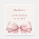 Un color de fondo marfil, crema. Decorado con un lazo rosa grande. Personalice y agregue el nombre y fecha.