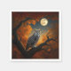 Un gran búho de cuerno en un árbol en otoño bajo la luz de una luna llena.