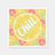 La palabra Chill en servilletas de papel presenta una gran parte de un limón sobre un collage de limones, limes, naranjas y rodajas de pomelo. Una divertida adición a su decoración de verano, fiesta o regalo como regalo.