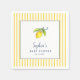 Cuidada diversión y alegre limones acuarelas pintadas a mano servilletas de ducha bebé con limón y rayas blancas en el fondo.
