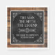 ¡Es El Hombre El Mito La LEYENDA! Su vida ha sido una aventura asombrosa y es momento de celebrar su legado y a él. Este rústico papel negro de madera con textura, de tipo blanco y esquinas de enrollado blanco. Las servilletas de almuerzo de cumpleaños 50 son perfectas para honrar y celebrar este increíble cumpleaños. Para ver sus toallas únicas, haga clic en "Personalizar esta plantilla" y escriba su información. ¡Es muy fácil!