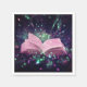 Estas servilletas tienen un libro mágico retratado en ellas.