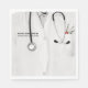 Las servilletas creativas de la graduación de la escuela de medicina incluyen una capa de laboratorio médica, estetoscopio y cuchillo del ejército suizo. Editar texto para agregar el nombre del médico.