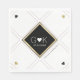 Un diseño elegante y moderno de líneas geométricas, sobre una servilleta de papel blanco, para la recepción de tu boda, personalizada con tus iniciales (un bonito monograma con la imagen de un corazón)