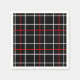 Patrón de rejilla simétrica con líneas blancas y rojas alternadas con fondo negro, creando un diseño visual llamativo y estructurado