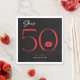 Moderna y moda, este diseño de la servilleta de luncheon de cumpleaños declara, "ella tiene 50 años" y combina el clásico blanco y negro con acentos de rojo brillante, con un lúgubre par de labios. Su diseño mínimo es un diseño simple y divertido para celebrar el cumpleaños del hito. Creado por Simply Farmhouse Press.