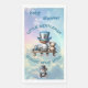 Elegante asunto del infante, pequeña ducha de bebé caballero, este lindo niño con su sombrero de punta sentado en las nubes en un banco con su auto de peluche y carreras.