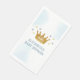 A little prince is on the way! Boy baby shower with gold crown and silver and gold stars with dreamy blue watercolor background