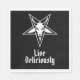 ¡Aquí hay una gran servilleta de almuerzo con temática de horror para un fiesta, una cena o un Día de Acción de Gracias! Las servilletas presentan una estilizada cabra de Baphomet, quizás Black Philip, con las palabras "Live Delicious" en negro. Sólo un agradable recordatorio para que te pongas decadente y comas más bocadillos. ¡Es perfecto para una reunión de cuervos u otro evento de brujas! Estas servilletas de almuerzo también son geniales para un evento con temática de horror, Halloween o un evento de gótico y ¡harán de cualquier evento más decadente y satánico!