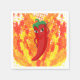 Caricatura de pimienta roja y caliente. Diseño original con llamas de fuego en el fondo. servilletas personalizados. ¡Por todas las fiestas que puedas imaginar! Idea de regalo para los amantes de las comidas picantes.