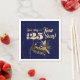 Glamorosas servilletas fiestas para celebrar el final y comienzo del año, en un fondo azul, con detalles dorados y negros, fácilmente personalizable