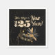 Glamorosas servilletas fiestas para celebrar el final y el comienzo del año, en un fondo negro, con detalles dorados y negros, fácilmente personalizable