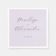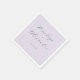 This elegant design features a soft lavender background with sophisticated cursive typography, creating an air of timeless romance and refinement. The minimalist layout focuses on the text, making it perfect for wedding napkins that exude understated elegance. Ideal for a classic or vintage-inspired celebration, this design captures a serene and romantic mood, inviting guests to partake in a memorable event. Its clean lines and subtle color palette ensure versatility, allowing it to complement various decor styles seamlessly.