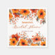 Imagina estas servilletas como un vibrante jardín de otoño, listo para florecer en las mesas de tu fiesta de compromiso. Cada una es un lienzo que estalla con el cálido abrazo de naranjas encendidos y rojos rústicos, una verdadera sinfonía de la creatividad de la naturaleza. Flores de tonos ricos y divertidos acentos de bayas enmarcan tu evento especial, aportando un toque acogedor a cada momento. Esto no es solo un diseño; es una celebración del color y el encanto. Recuerda que el texto es totalmente personalizable, lo que te permite personalizar estas hermosas servilletas para tu ocasión única.