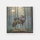 Las servilletas de la fiesta de cumpleaños presentan un guapo lobo en un mágico bosque nublado. El texto se puede cambiar o eliminar.