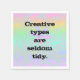 Las personas creativas no siempre son las más limpias, pero la creatividad toma algunos desaciertos, ¿verdad? ¡Este es el diseño perfecto para ese fiesta de arte, espectáculo de galería o estudio de artistas! Diseñado en el hermoso estado de Washington, EE.UU., por un artista independiente (a veces no tan ordenado) y de tipo creativo.