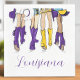 Add the perfect Southern touch to your next celebration with these stylish Louisiana cocktail napkins. Featuring a fun illustration of fashionable ladies from the waist down dressed in purple and gold outfits, paired with coordinating cowboy boots and hats, this design is playful, chic, and full of game day spirit.