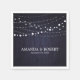 Servilleta De Papel Luces De Cadena Sobre Azul Boda De Madera Rústica