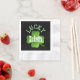Lucky Irish Shamrock St Patricks Fiesta Napkins de papel Diseñado con un fondo negro personalizable y un gran trébol verde de cuatro hojas en el centro. El "irlandés afortunado" está decorado con letras de colores vivos verdes y blancos. Hace un diseño genial para un fiesta de San Patricio.