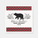 Celebra tu ducha de bebé con estas servilletas personalizadas de papel de leñador. Presentan letras en negrita y guión, un oso entre follaje con un patrón de manto de búfalo en el borde. Hacen una adición adorable para tu ducha de bebé. Diseñado para ti por Blackberry Boulevard.