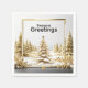 Transform your holiday table into a winter wonderland of elegance with this exquisite Christmas napkin. Featuring a serene forest of golden trees dusted with fresh snow, framed by a delicate golden border, and centered by a modern, sophisticated faux-gold tree, this design exudes refined festive charm.