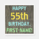 Este divertido diseño de servilletas de cumpleaños incluye un mensaje como "¡FELIZ 55º CUMPLEAÑOS, NOMBRE PRIMERO!", donde el nombre puede ser personalizado. El fondo está decorado con un estilo rústico, marrón y falso de aspecto de grano de madera. El texto del mensaje personalizado presenta colores como azul, amarillo y verde, y tiene un aspecto inspirado en el de las letras pintadas y estampadas. Las servilletas como estas podrían ser usadas en una fiesta de cumpleaños para alguien que está celebrando su 55º cumpleaños. [~Z0000292]