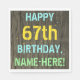 Este divertido diseño de servilletas de cumpleaños incluye un mensaje como "FELIZ CUMPLEAÑOS 67, NOMBRE - AQUÍ!", donde el nombre puede ser personalizado. El fondo está decorado con un estilo rústico, marrón y falso de aspecto de grano de madera. El texto del mensaje de personalizable presenta colores como azul, amarillo y verde, y tiene un aspecto inspirado en el de las letras pintadas y estampadas. Las servilletas como estas podrían ser usadas en una fiesta de cumpleaños para alguien que esté celebrando su sexagésimo séptimo cumpleaños. [~Z0000292]