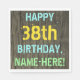 Este divertido diseño de servilletas de cumpleaños incluye un mensaje como "FELIZ 38º CUMPLEAÑOS, NOMBRE - AQUÍ!", donde el nombre puede ser personalizado. El fondo está decorado con un estilo rústico, marrón y falso de aspecto de grano de madera. El texto del mensaje personalizado presenta colores como azul, amarillo y verde, y tiene un aspecto inspirado en el de las letras pintadas y estampadas. Las servilletas como estas podrían ser usadas en una fiesta de cumpleaños para alguien que está celebrando su cumpleaños treinta y ocho. [~Z0000292]