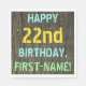 Este divertido diseño de servilletas para fiestas de cumpleaños incluye un mensaje como "¡FELIZ 22º CUMPLEAÑOS, NOMBRE PRIMERO!", donde el nombre puede ser personalizado. El fondo está decorado con un estilo rústico, marrón y falso de aspecto de grano de madera. El texto del mensaje personalizado presenta colores como azul, amarillo y verde, y tiene un aspecto inspirado en el de las letras pintadas y estampadas. Las servilletas como estas podrían ser usadas en una fiesta de cumpleaños para alguien que esté celebrando su vigésimo segundo cumpleaños. [~Z0000292]
