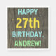 Este divertido diseño de servilletas de cumpleaños incluye un mensaje como "¡FELIZ CUMPLEAÑOS 27, ANDREW!", donde el nombre puede ser personalizado. El fondo está decorado con un estilo rústico, marrón y falso de aspecto de grano de madera. El texto del mensaje personalizado presenta colores como azul, amarillo y verde, y tiene un aspecto inspirado en el de las letras pintadas y estampadas. Las servilletas como estas podrían ser usadas en una fiesta de cumpleaños para alguien que está celebrando su cumpleaños veintisiete. [~Z0000292]