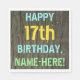 Este divertido diseño de servilletas de cumpleaños incluye un mensaje como "FELIZ cumpleaños número 17, NOMBRE - AQUÍ!", donde el nombre puede ser personalizado. El fondo está decorado con un estilo rústico, marrón y falso de aspecto de grano de madera. El texto del mensaje de personalizable presenta colores como azul, amarillo y verde, y tiene un aspecto inspirado en el de las letras pintadas y estampadas. Las servilletas como estas podrían ser usadas en una fiesta de cumpleaños para alguien que está celebrando su decimoséptimo cumpleaños. [~Z0000292]