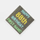 Este divertido diseño de servilletas de cumpleaños incluye un mensaje como "¡FELIZ 88º CUMPLEAÑOS, NOMBRE PRIMERO!", donde el nombre puede ser personalizado. El fondo está decorado con un estilo rústico, marrón y falso de aspecto de grano de madera. El texto del mensaje personalizado presenta colores como azul, amarillo y verde, y tiene un aspecto inspirado en el de las letras pintadas y estampadas. Las servilletas como estas podrían ser usadas en una fiesta de cumpleaños para alguien que esté celebrando su ochenta y ocho cumpleaños. [~Z0000292]