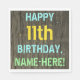 Este divertido diseño de servilletas de cumpleaños incluye un mensaje como "FELIZ 11º CUMPLEAÑOS, NOMBRE - AQUÍ!", donde el nombre puede ser personalizado. El fondo está decorado con un estilo rústico, marrón y falso de aspecto de grano de madera. El texto del mensaje de personalizable presenta colores como azul, amarillo y verde, y tiene un aspecto inspirado en el de las letras pintadas y estampadas. Las servilletas como estas podrían ser usadas en una fiesta de cumpleaños para alguien que está celebrando su undécimo cumpleaños. [~Z0000292]