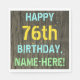 Este divertido diseño de servilletas de cumpleaños incluye un mensaje como "FELIZ CUMPLEAÑOS 76, NOMBRE - AQUÍ!", donde el nombre puede ser personalizado. El fondo está decorado con un estilo rústico, marrón y falso de aspecto de grano de madera. El texto del mensaje personalizado presenta colores como azul, amarillo y verde, y tiene un aspecto inspirado en el de las letras pintadas y estampadas. Las servilletas como estas podrían ser usadas en una fiesta de cumpleaños para alguien que está celebrando su cumpleaños setenta y seis. [~Z0000292]