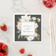 Estas elegantes servilletas de papel en blanco y negro de boda magnolia son perfectas para una moderna recepción nupcial. El diseño floral húmedo incluye peonías color agua rosada, magníficas flores de magnolia blanca y algodón con hojas doradas y verdes en un arreglo lujoso sobre un fondo oscuro. Personalice las servilletas con los nombres de la novia y del novio. Estas servilletas se pueden usar para la recepción de bodas, cena de ensayo, fiesta de compromiso y más.