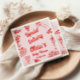 Como ven esta exclusiva y elegante pizza italiana entrega especial de la servilleta de la ducha de bebé tiene una plantilla bien diseñada. Con porciones de pizza dibujadas a mano roja y vasos de champán y velas con un nombre escrito a mano y fecha en rojo magenta. Todo en un fondo rosado. Lo que puede personalizar fácilmente al pulsar el botón de personalización.