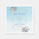 Moderno marco de oro art deco y rosas de lavanda y beige con hojas. Diamantes plateados en el medio con monograma. Fondo azul gradiente